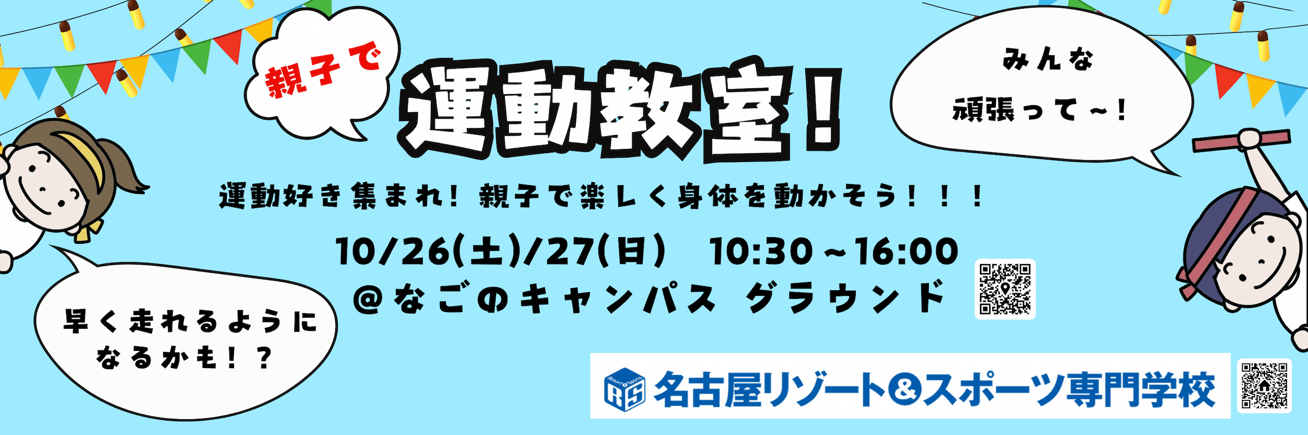 10/26日(日)は雨天予報のため、「なごのキャンパス体育館」で実施となりました。
